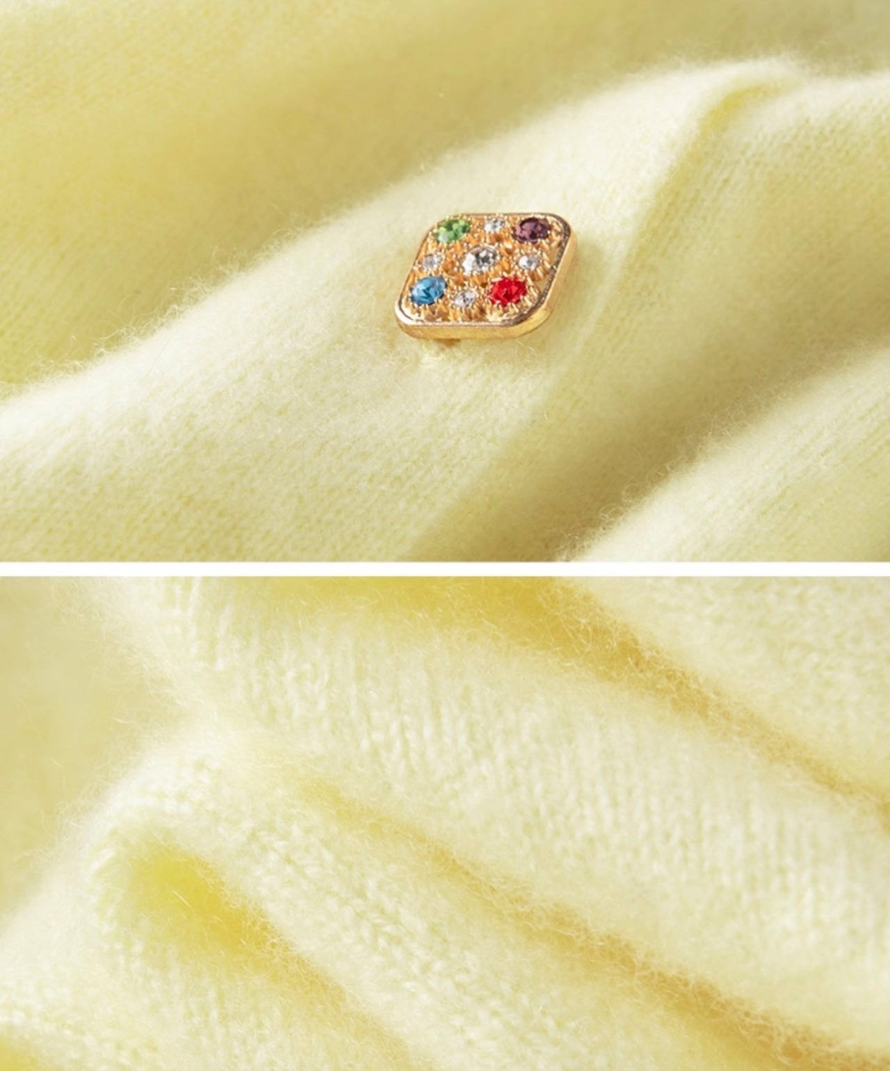 ビジューボタンニット 黄色 イエロー 長袖 カーディガン 羽織り 秋冬春