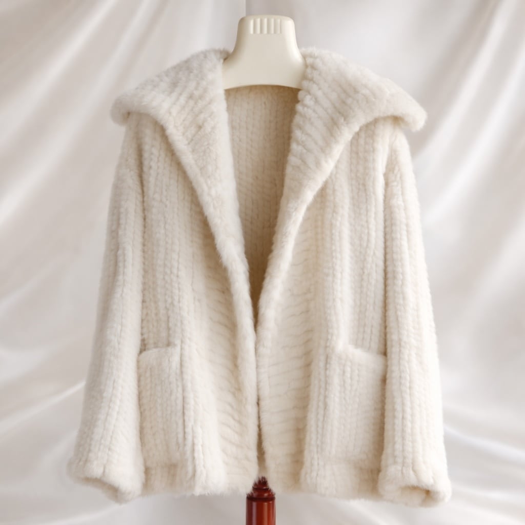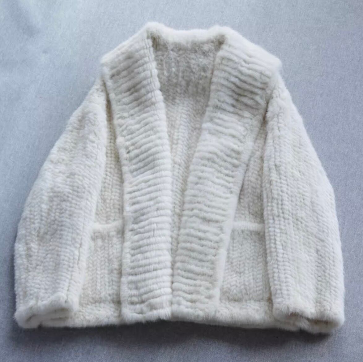ミンクファー ミンク コート ジャケット カジュアル アイボリー リアルファー リアルミンク 両面織 毛皮 ミドル丈 セーラーカーディガン