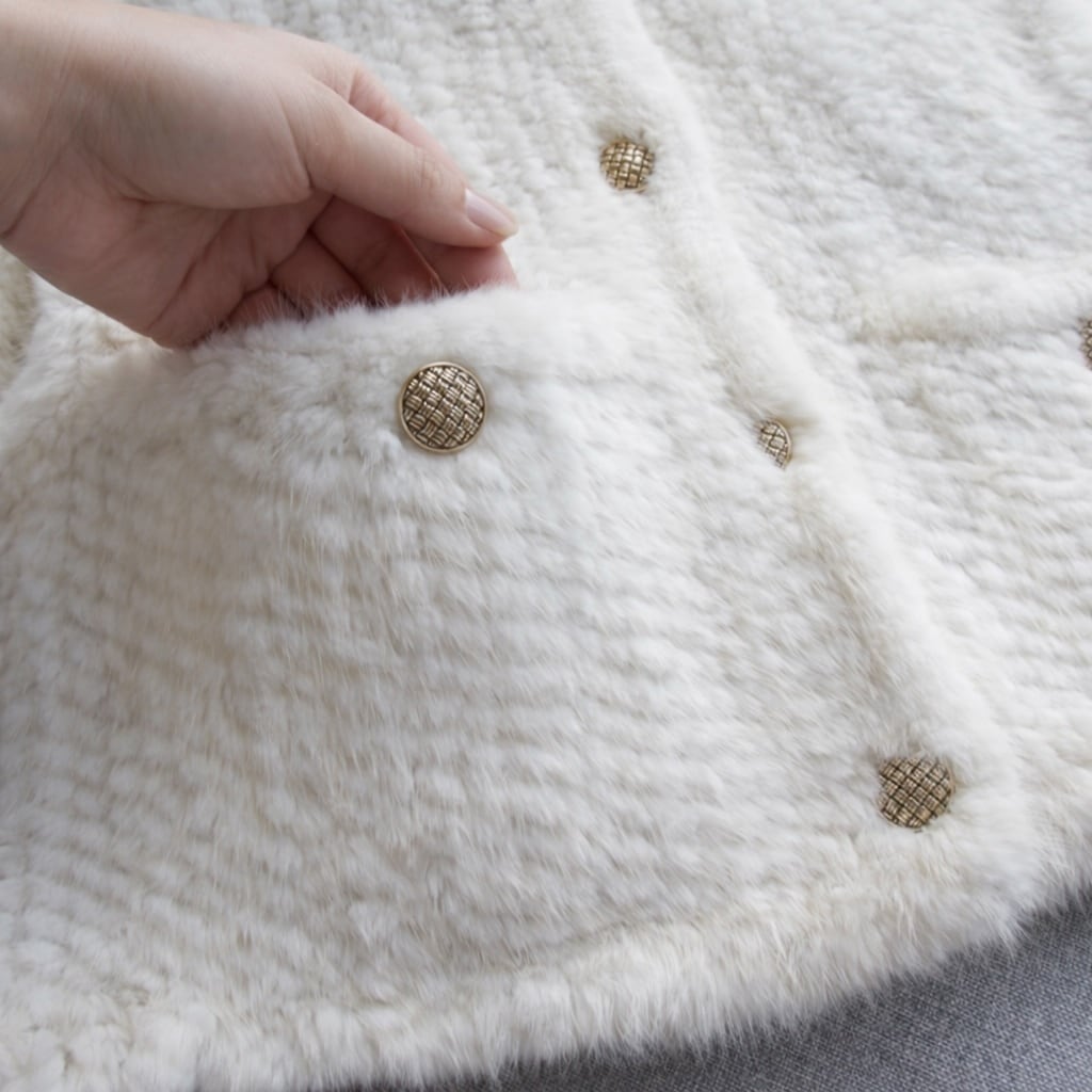 ミンクファー 両面織り ミンク ベスト 金ボタン アイボリー リアルファー リアルミンク 両面織 ノースリーブ 毛皮