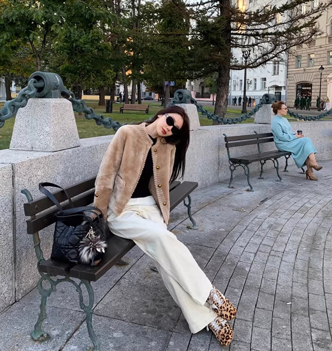 ラムスキン メリノウール ムートンコート レディース リアルファー 毛皮 コート ジャケット キャメル ベージュ ショート丈 レザー 金ボタン